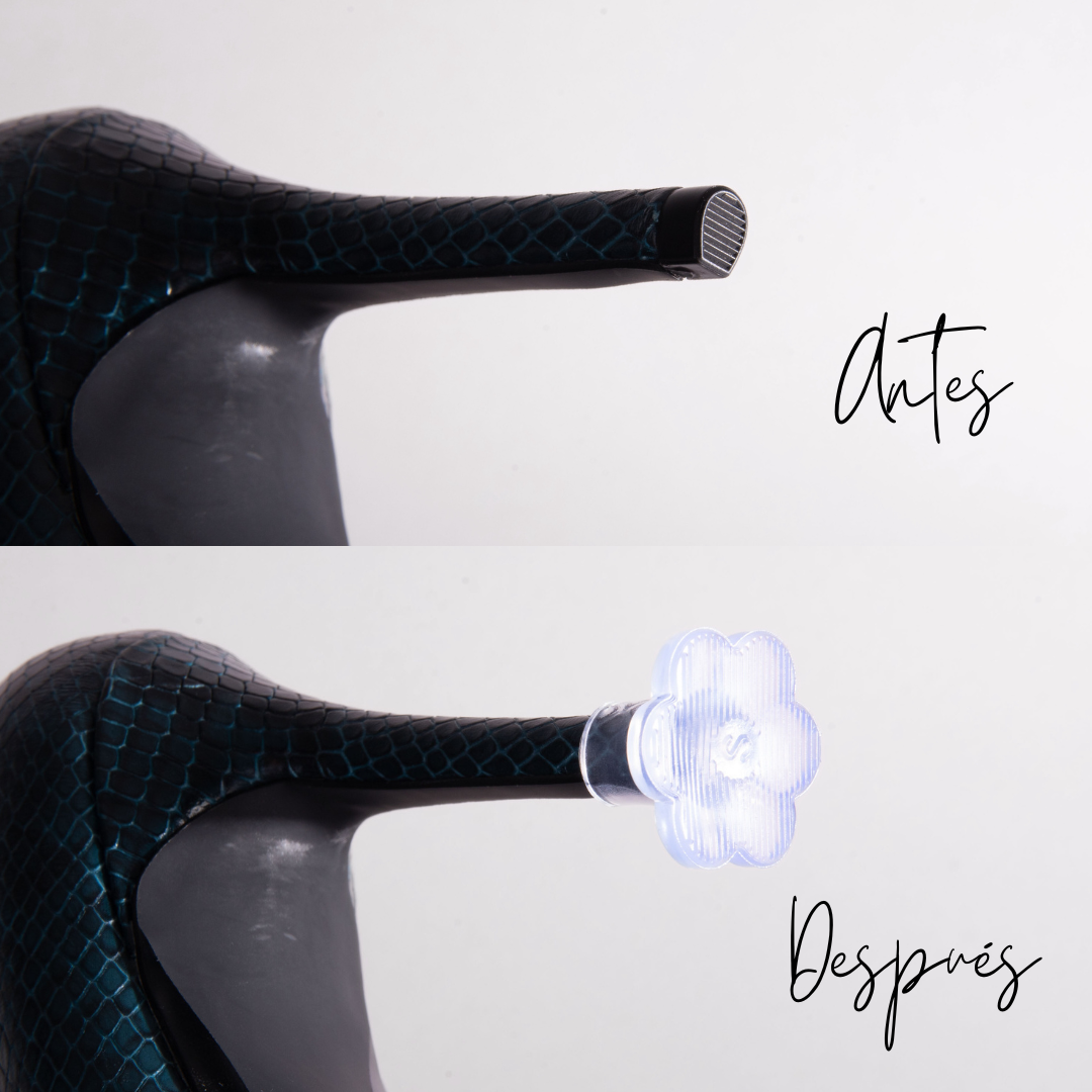 ¡IMPORTANTE! Asegúrate de que los cubretacones queden bien ajustados solo en la base del tacón. Límpialos regularmente para evitar que se pongan amarillos y asegúrate de que estén en buen estado antes de cada uso.